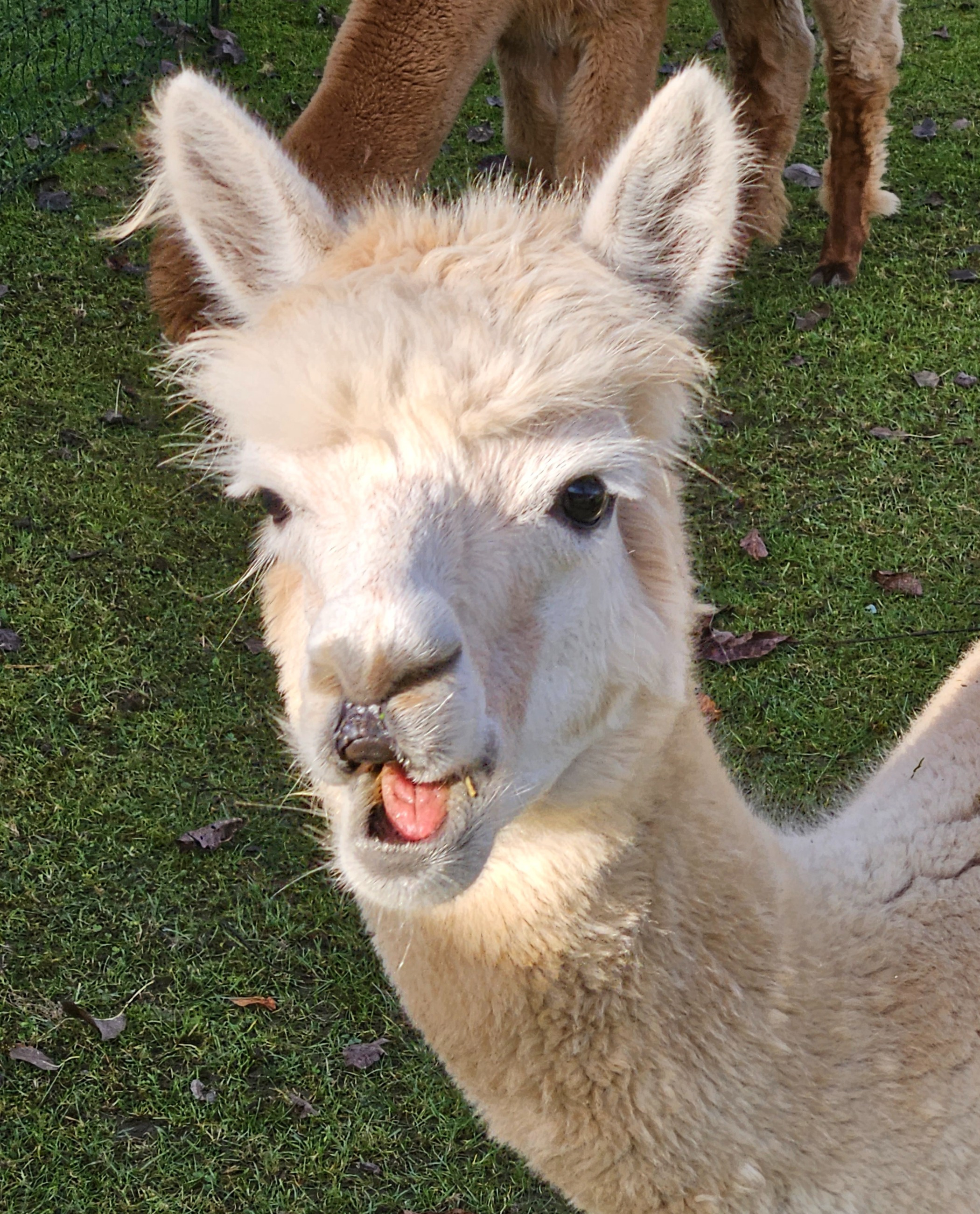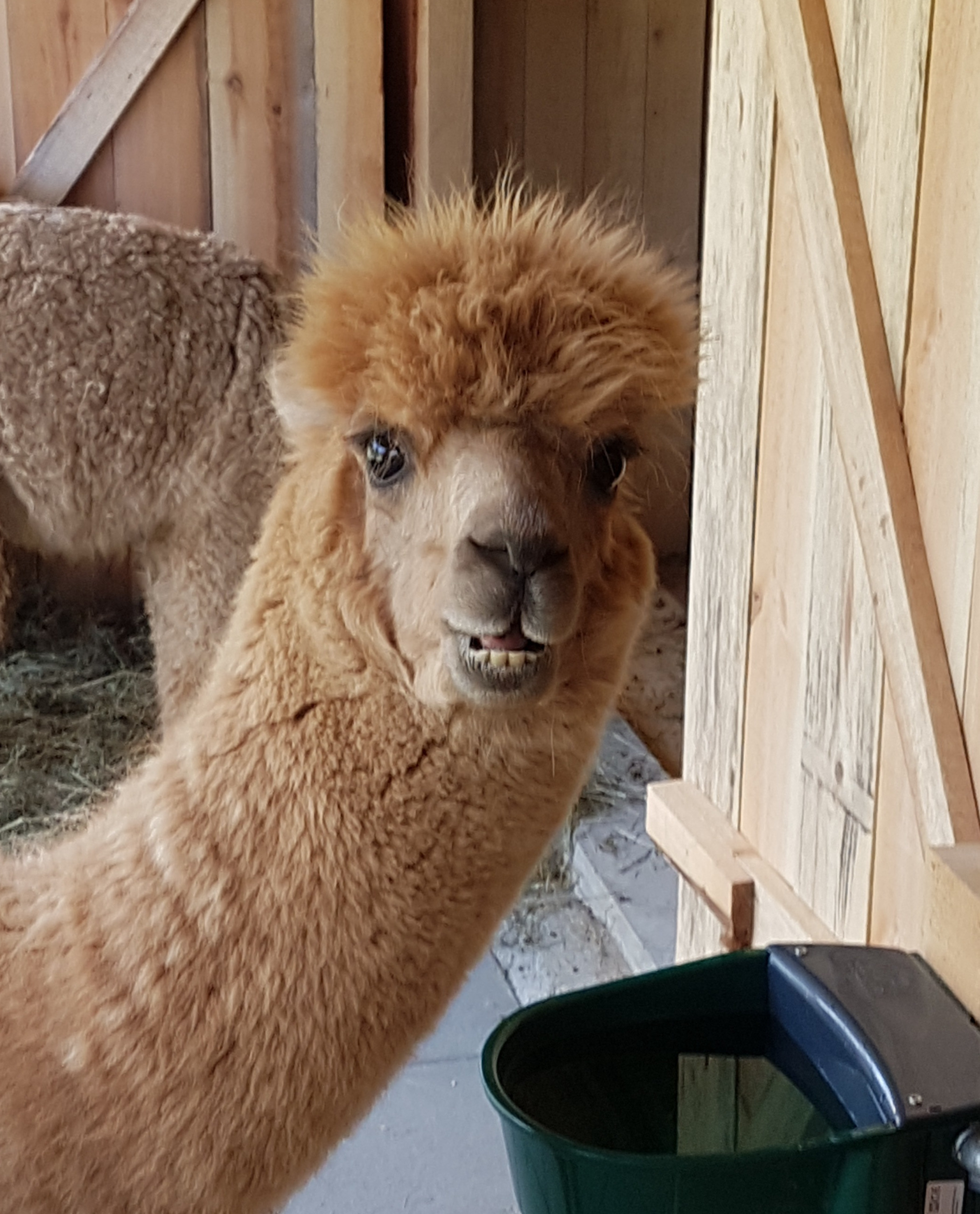Das Alpaka zählt zu den Neuweltkamelen und kommt ursprünglich aus den peruanischen Anden in Südamerika. Alpakas sind Herdentiere, und fressen hauptsächlich Gras und Heu. Charakterlich sind sie ruhig, friedlich, neugierig, aber durchaus als eher scheu zu bezeichnen.